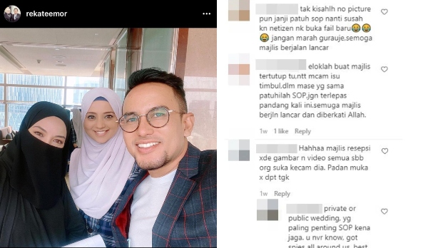 Lebih mengundang tanda tanya, Neelofa tinggalkan komen di foto tersebut bertulis,Private wedding… no cameras allowed,” katanya beserta dengan beberapa emoji gembira.“Tak kisahlah no picture pun janji patuh SOP” Rata-rata warganet yang melihat komen pengacara dan pelakon tersebut mula ‘kecoh’ dan segera memberi peringatan supaya mengikuti SOP yang ditetapkan walaupun majlis yang bakal berjalan nanti tiada gambar akan dirakamkan.
